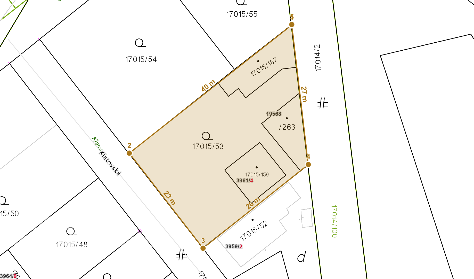 - prístup na pozemok je z dvoch strán, od uice Terchovská, ako aj od ulice Klatovská