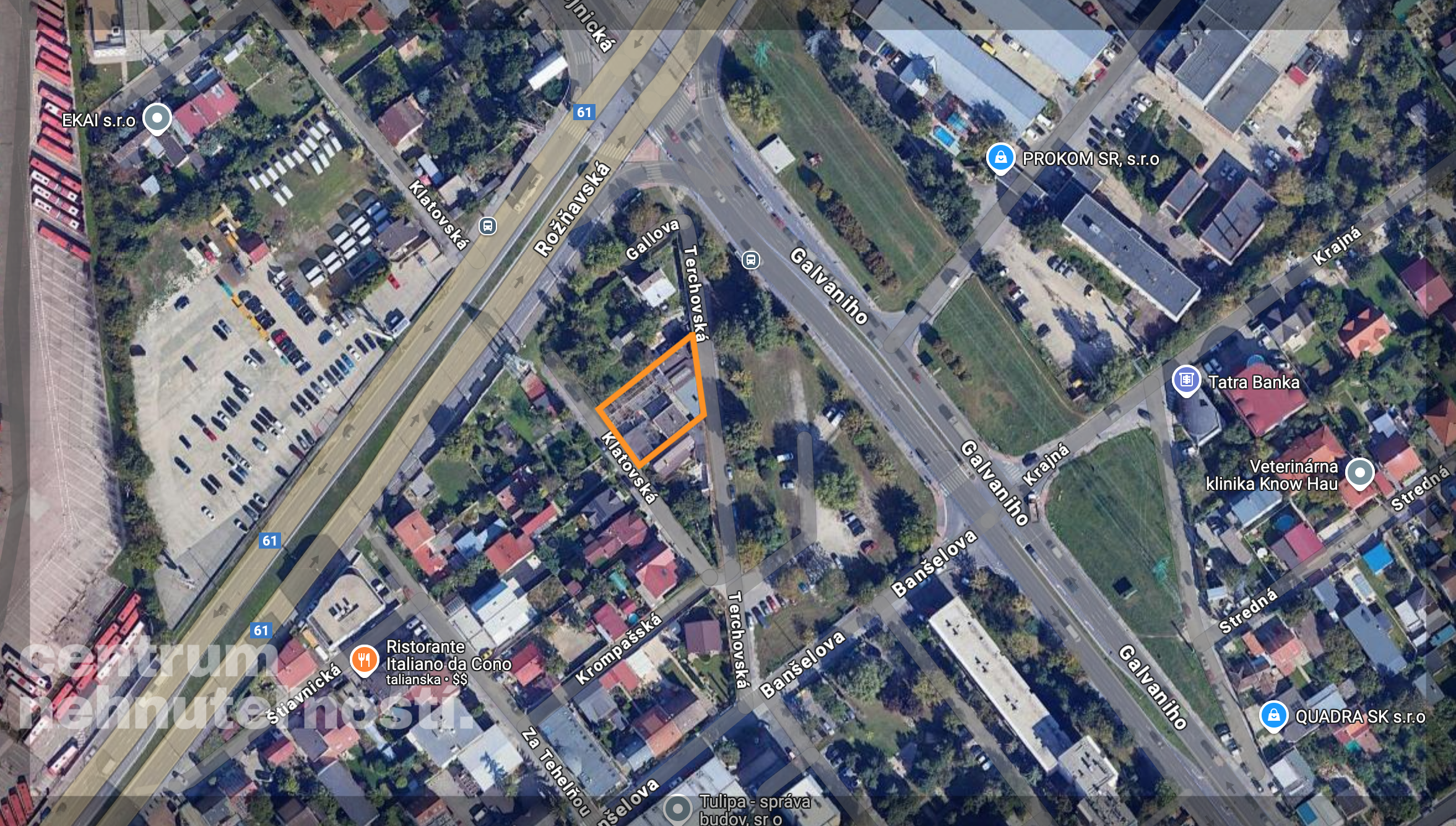 Predaj pozemok 760 m2 s rodinným domom a dvoma ďalšími budovami, Bratislava II - Ružinov, Trnávka - Klatovská / Terchovská ulica.